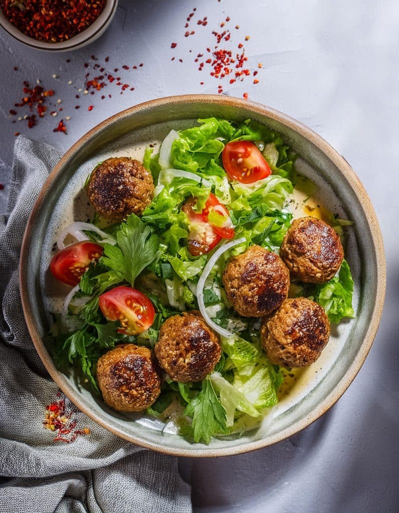 Lebanese 7 spice chicken meatballs with sumac dressing