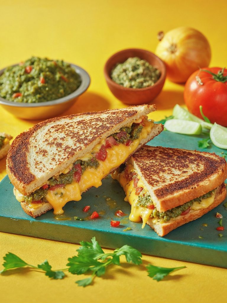 A crispy, buttery toastie packed with spicy mashed potato, tangy chutney, and layered veggies – this Mumbai street-style masala toastie is an absolute flavour bomb, ready in under 30 minutes!