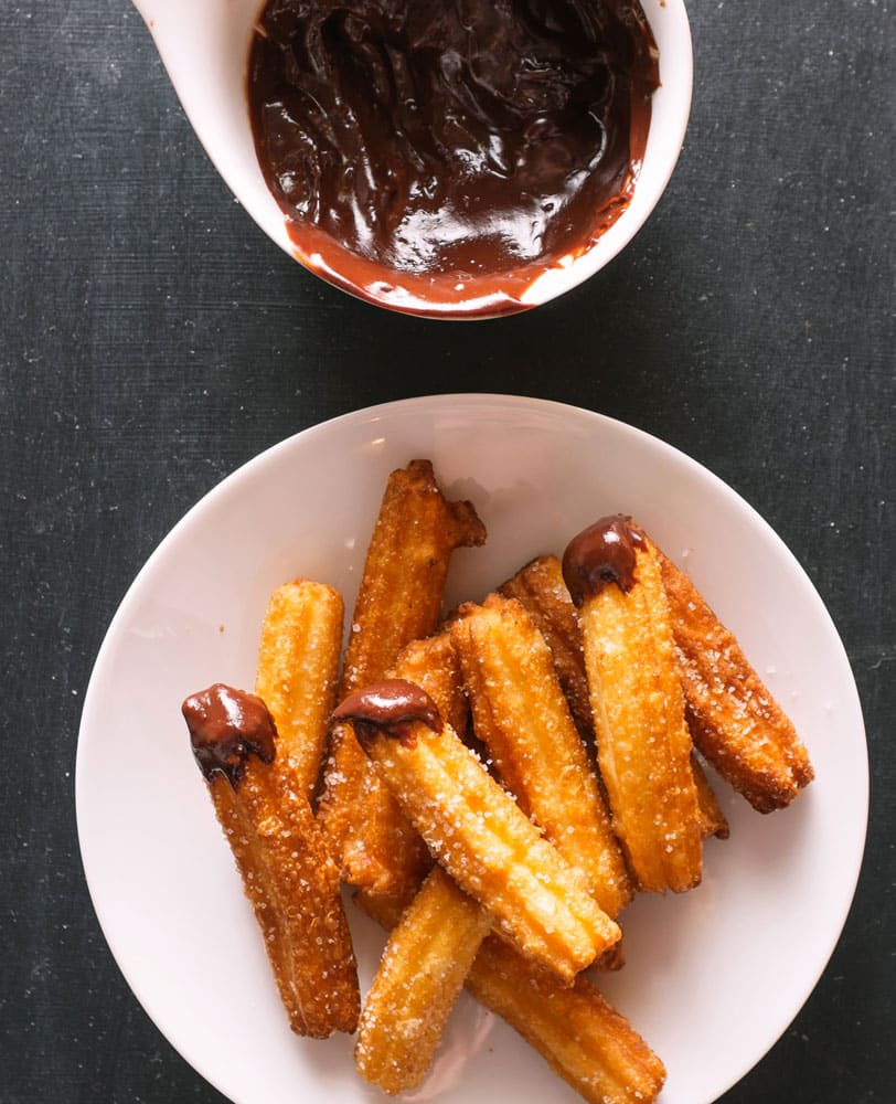 Homemade churros and hot chocolate dipping