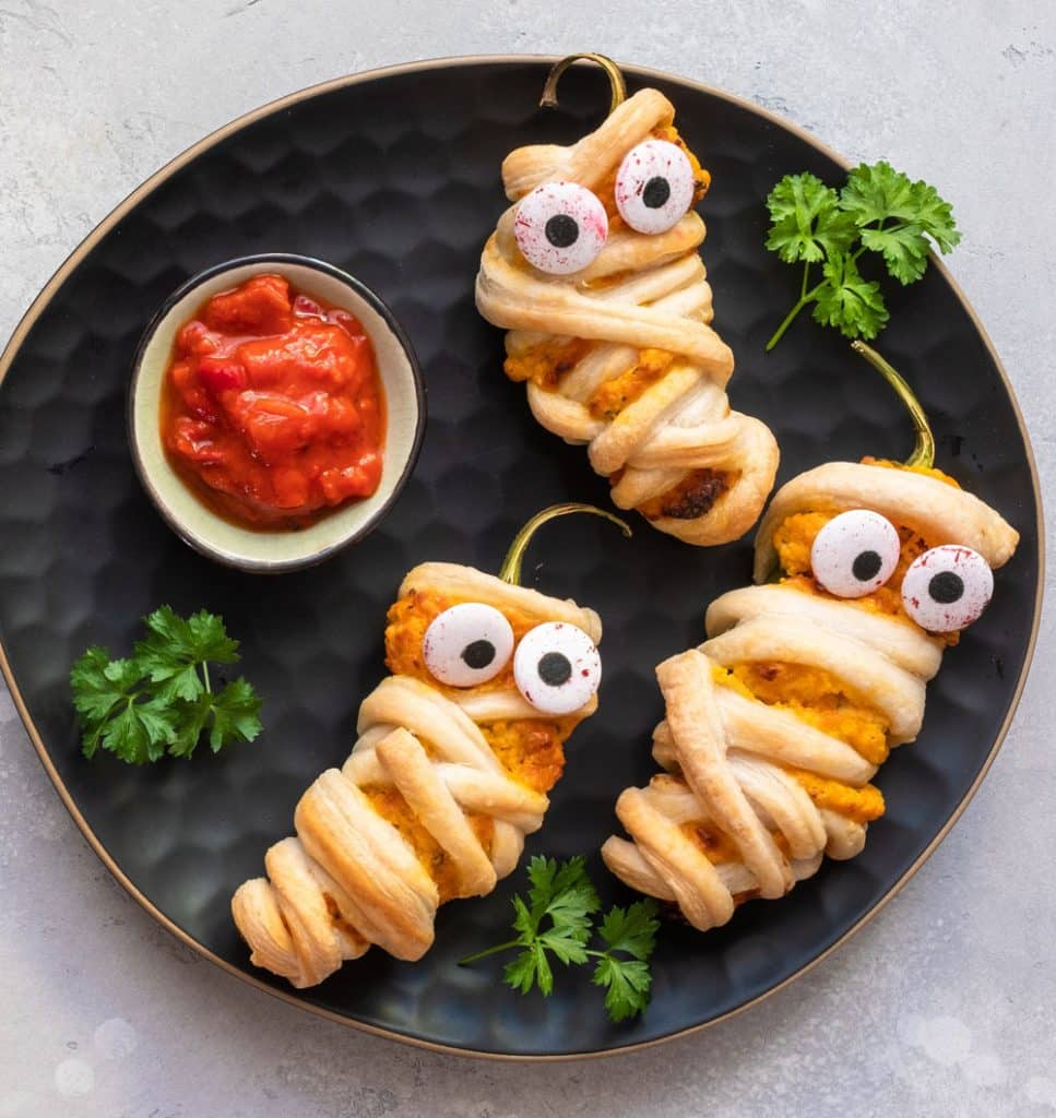 These cheesy, spicy, and mummy-wrapped jalapeño poppers are the perfect appetiser to satisfy your cravings for both flavour and fun