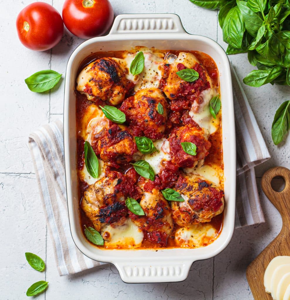 Baked tomato chicken with buffalo cheese