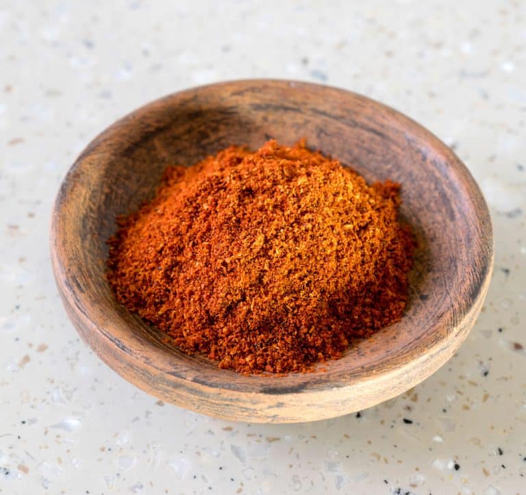 Ingredients: Cayenne pepper, Fenugreek, paprika, garlic, cumin, coriander, salt, ginger, turmeric, cinnamon, black pepper, cardamon, allspice and cloves.