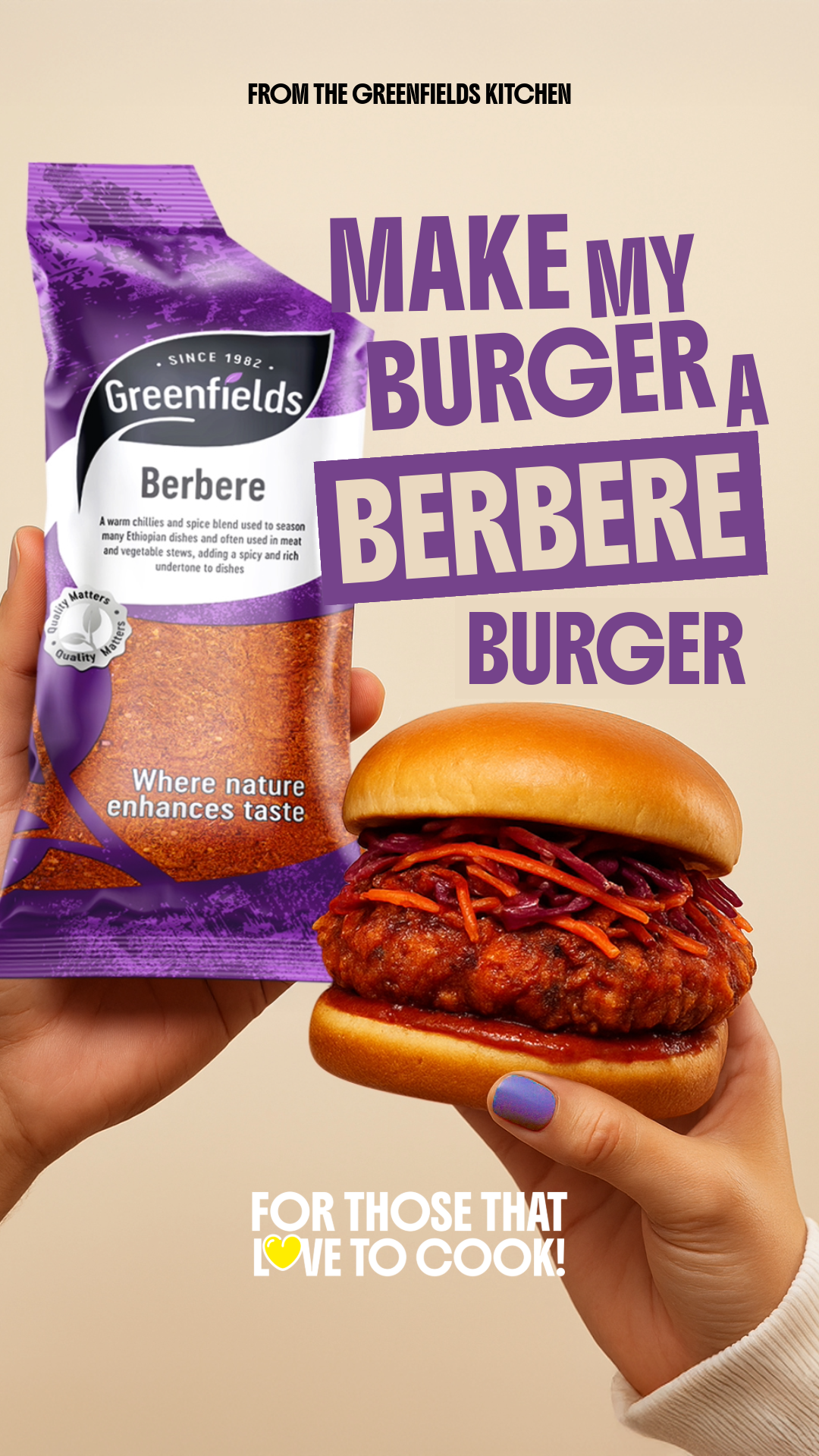 Greenfields Berbere is a fiery, aromatic Ethiopian spice blend that captures the soul of East African cooking. Rich in chilli heat, lifted with ginger and cardamom, and deepened by warm spices like fenugreek and cloves, it delivers bold, earthy flavours that instantly transport dishes to the vibrant kitchens of Ethiopia.