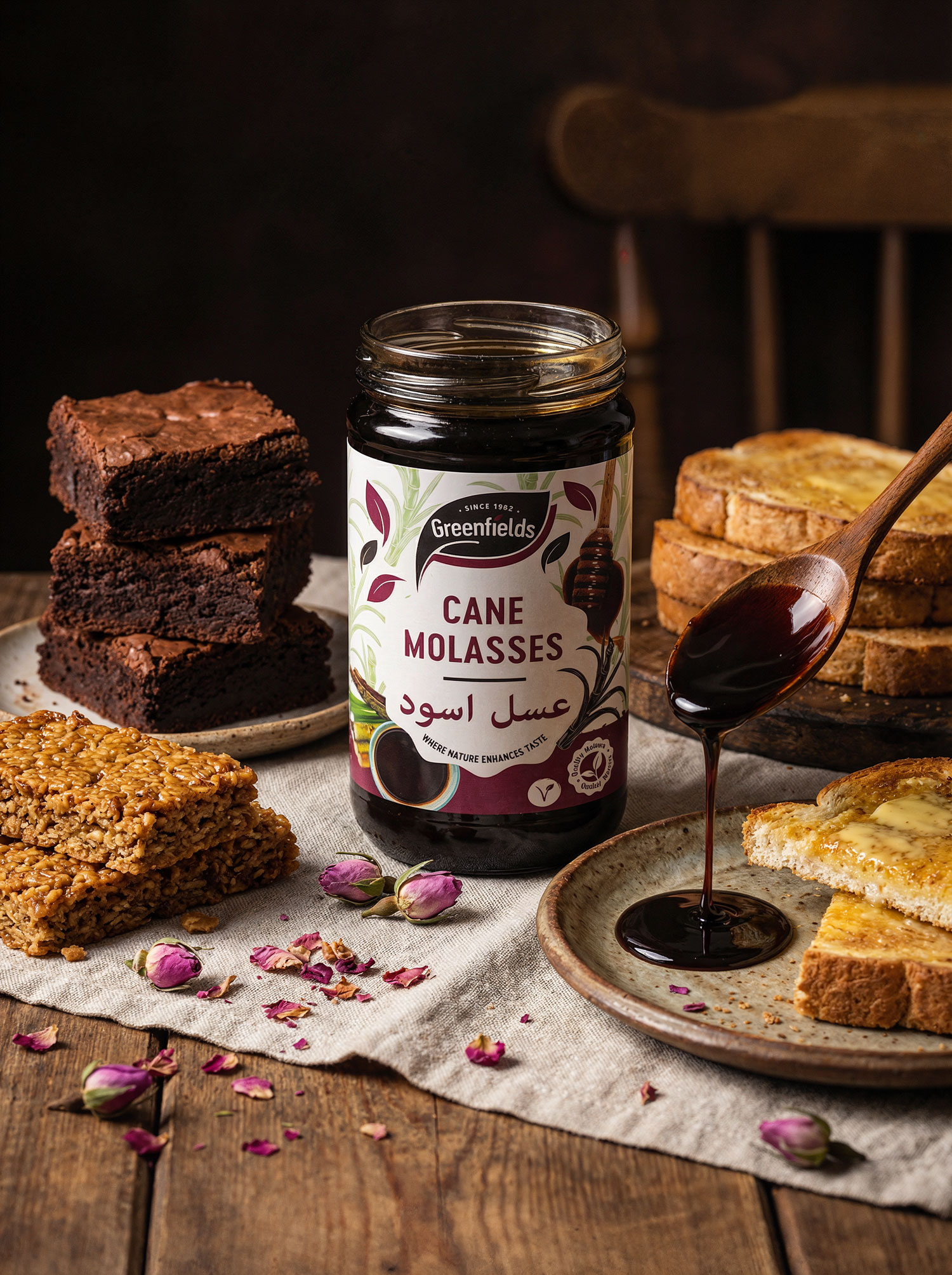 Cane molasses has a long history in baking and cooking, bringing richness to gingerbread, fruit cakes, biscuits, and festive puddings. It’s equally at home in savoury recipes, adding gloss and body to marinades, BBQ sauces and slow-cooked stews. Stir a spoonful into porridge or smoothies for a comforting touch, or use it in bread dough to enhance both flavour and colour.
