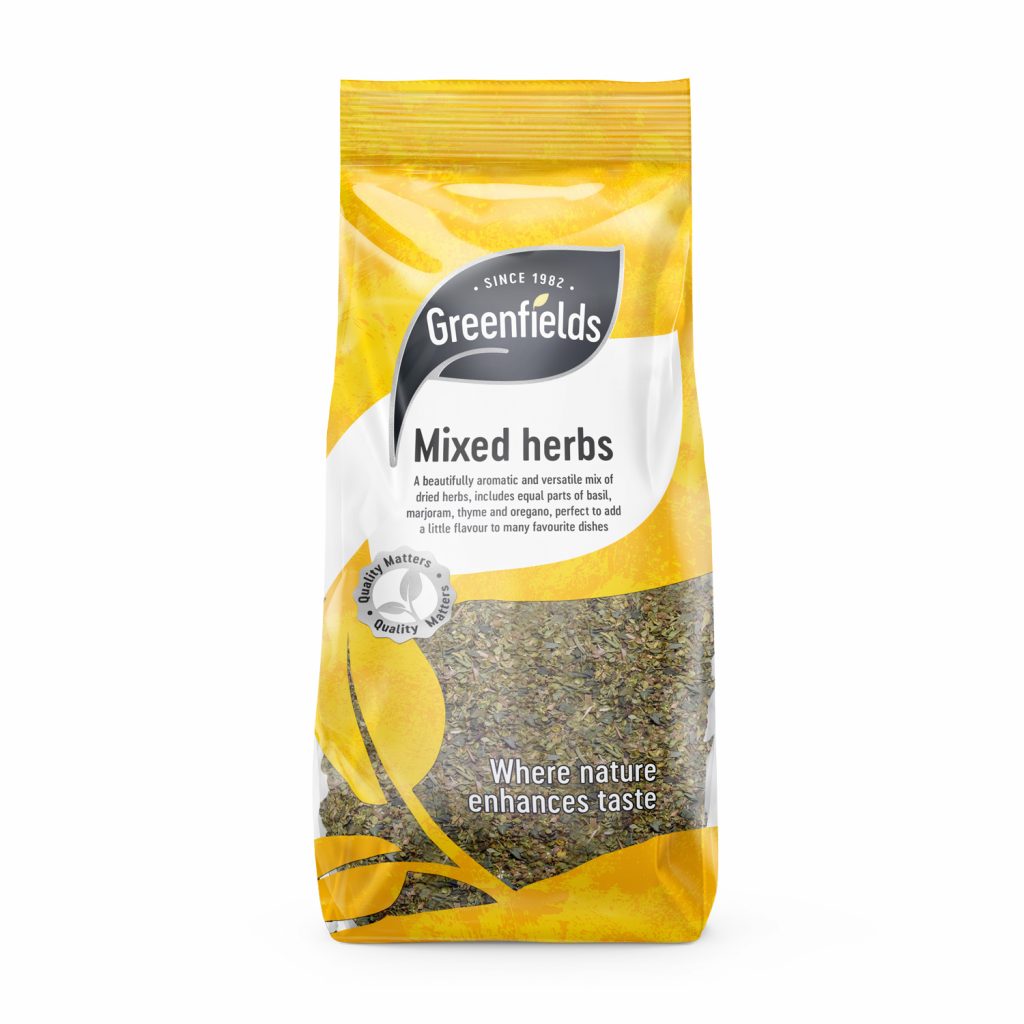 A timeless kitchen essential, this classic blend of dried herbs, Greenfields Mixed Herbs brings together the fragrant flavours of the Mediterranean into one convenient jar. With its balanced mix of oregano, marjoram, thyme and basil, it adds depth, freshness and a gentle herbal lift to everyday cooking.